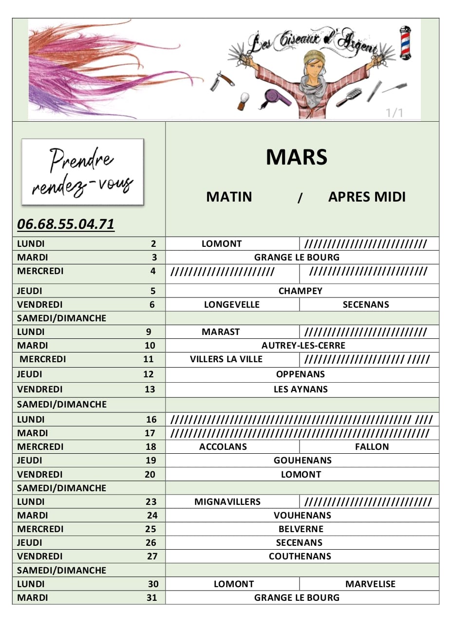 Bienvenue aux Ciseaux d’Argent, votre salon de coiffure mobile en Haute-Saône. Nous révolutionnons l’expérience de la coiffure en apportant notre camion-salon directement chez vous, dans les villages environnants. Avec notre concept unique de salon itinérant, nous offrons une gamme complète de services de coiffure pour hommes, femmes et enfants, dans le confort de votre propre environnement. Finies les attentes interminables et les déplacements inutiles.