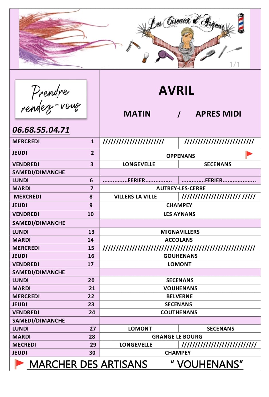 Pour connaître notre emplacement cette semaine, nous vous invitons à consulter régulièrement notre agenda en ligne. Nous mettons à jour notre calendrier pour vous informer des lieux et des dates où vous pourrez retrouver notre salon mobile. Cette flexibilité vous permet de planifier à l’avance votre rendez-vous, en choisissant le moment et le lieu qui vous conviennent le mieux. Restez connectés pour des mises à jour en temps réel et ne manquez pas l’occasion de profiter de nos services exceptionnels,